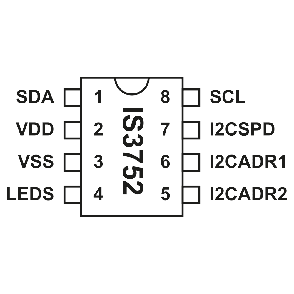 (This IC is the successor to the IS3750, which supported only a single I2C slave address. Now the IS3752 features 25 configurable I²C slave addresses and a different pinout.)